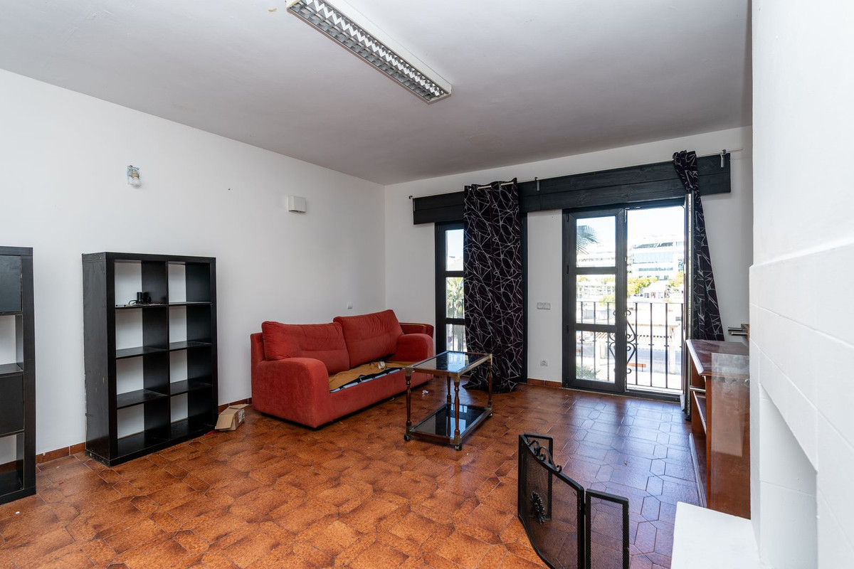 It features two large bedrooms, two bathrooms, and a spacious living room with a fireplace. The apartment needs renovation, offering flexibility for different layouts: the kitchen can be opened into the living area to create a larger open-plan space, or the same area can be used to add a third bedroom, depending on the buyer’s project.