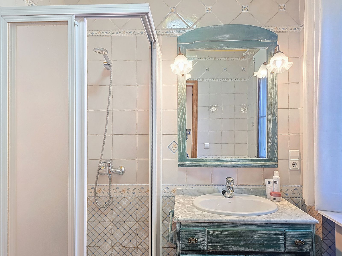 Deuxième suite : placards intégrés, salle de bains attenante (douche, lavabo, WC), climatisation
