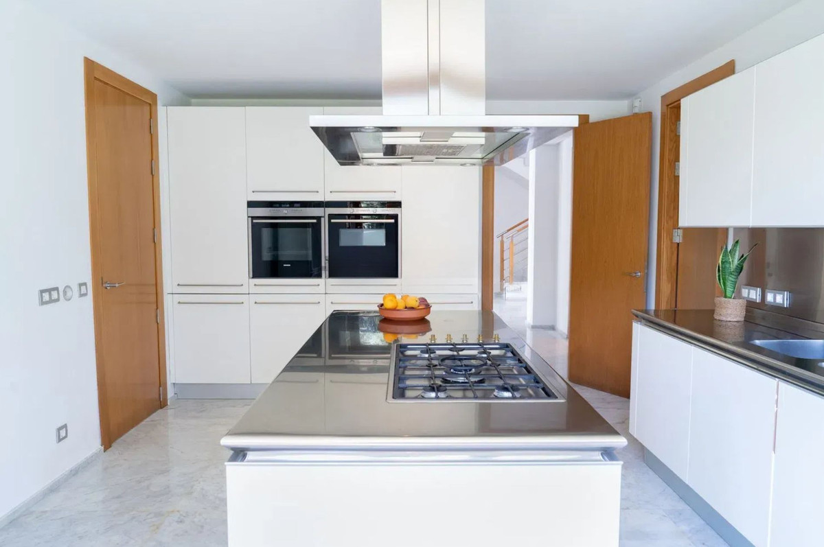 La villa a fait l'objet d'une rénovation complète et d'un aménagement intérieur signés par le célèbre cabinet Fran Silvestre Arquitectos. Le nouvel agencement comprend une cuisine entièrement rénovée, harmonieusement intégrée à une salle à manger ouverte donnant sur la piscine. Le salon offre une vue panoramique imprenable sur le jardin luxuriant et la chênaie environnante.