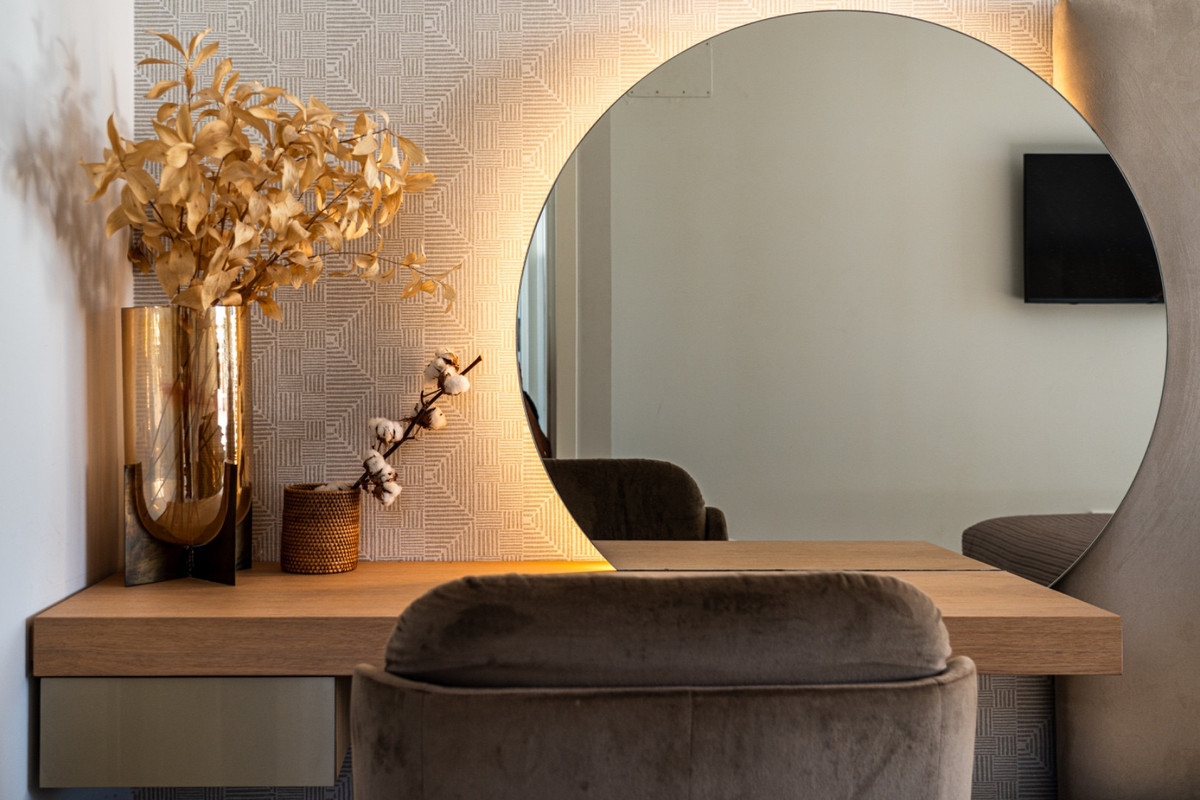À l'intérieur, chaque chambre dispose d'une salle de bains privative et d'un placard intégré. L'agencement est simple et fonctionnel. La pièce de vie principale s'ouvre sur une terrasse offrant une vue imprenable sur la mer. Le design privilégie le confort avec des finitions soignées.