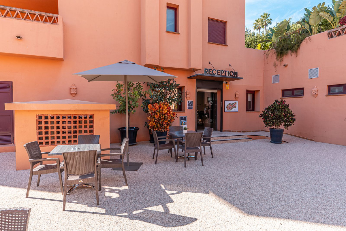 Cet appartement se situe au sein d'une résidence sécurisée avec accès contrôlé et deux piscines, des jardins paysagers, une salle de sport, un ascenseur, un système de vidéosurveillance et une place de parking privée. Entouré de terrains de golf et à quelques minutes seulement d'El Paraíso Golf, d'Atalaya Golf et de Capanes del Golf, le complexe offre un cadre de vie idéal, alliant tranquillité et commodités.