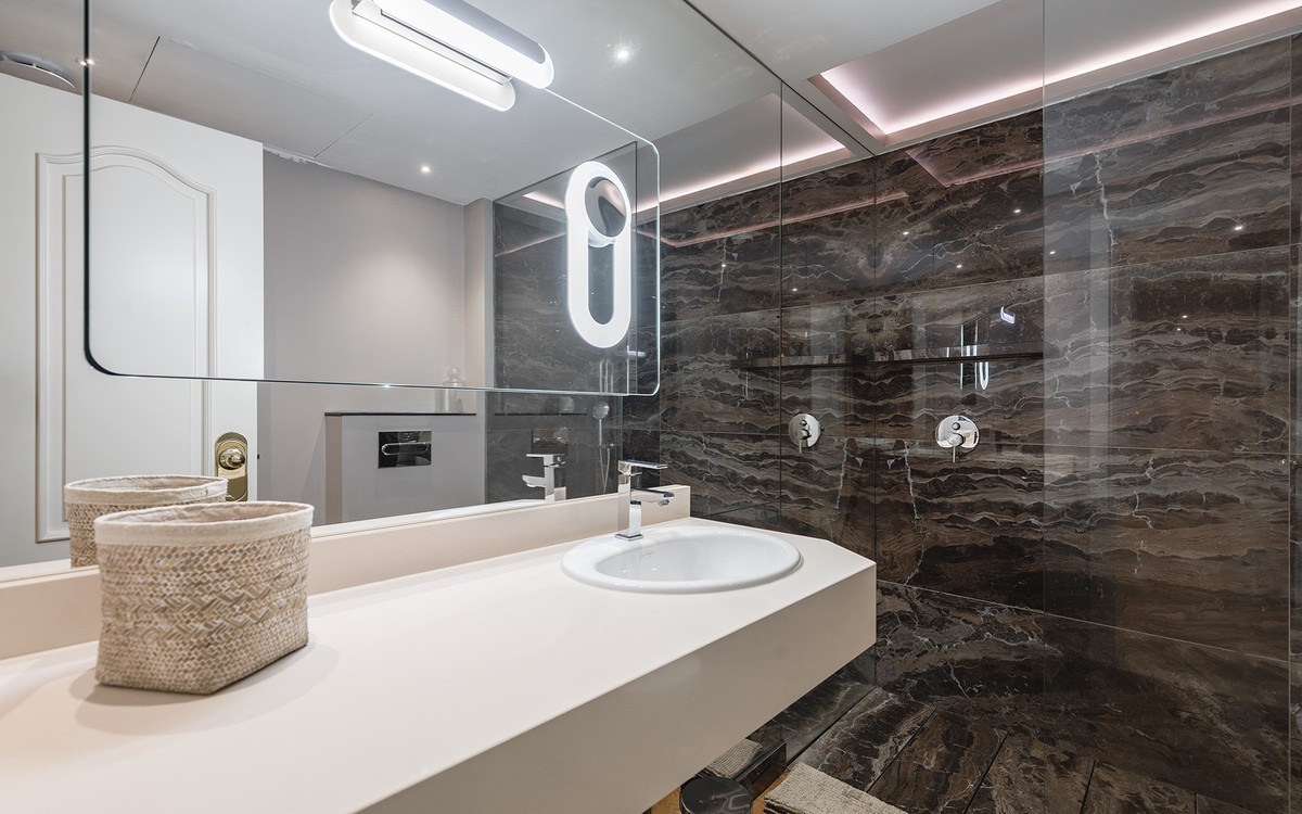 Caractéristiques : Terrasse couverte, Ascenseur, Placards intégrés, Proximité des transports, Terrasse privée, Salle de sport, Sauna, Salle de bains attenante, Sol en marbre, Double vitrage