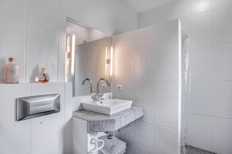La résidence principale, judicieusement agencée de plain-pied, comprend trois chambres spacieuses, chacune avec sa propre salle de bains, ainsi qu'un WC invités pour plus de confort. La suite parentale dispose d'un dressing et d'un accès direct au jardin luxuriant, créant ainsi un havre de paix et d'intimité.