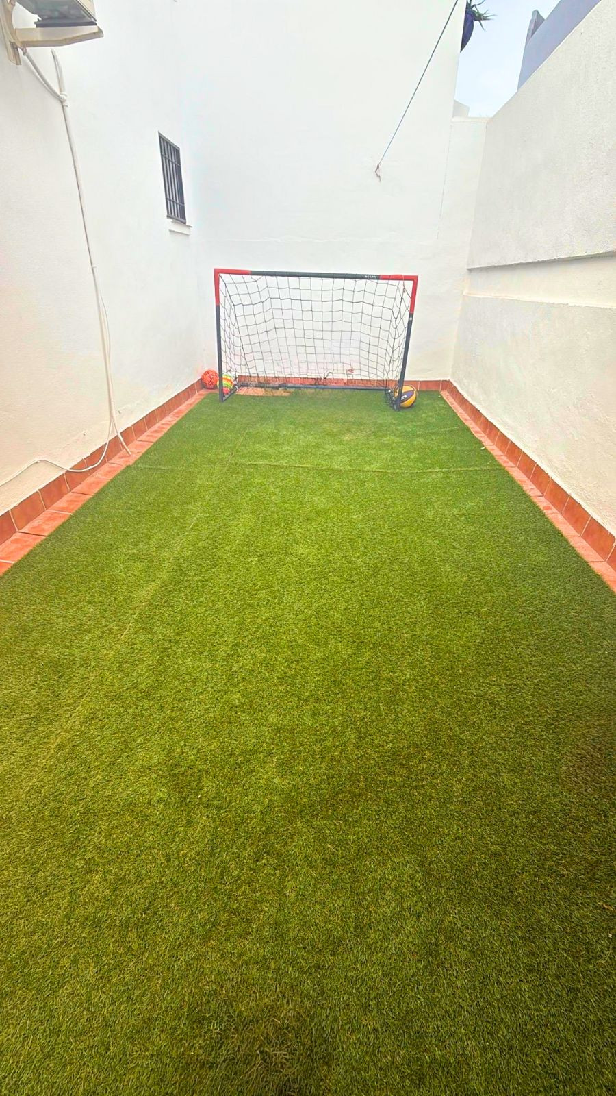 L'un des principaux atouts de cette propriété est son espace extérieur privé, idéal pour profiter du climat méditerranéen. Comme le montrent les photos, l'extérieur comprend une terrasse carrelée parfaite pour les repas en plein air ou la détente, ainsi qu'un espace supplémentaire avec du gazon synthétique, idéal pour les familles, les animaux de compagnie ou tout simplement pour créer une atmosphère verdoyante et paisible.