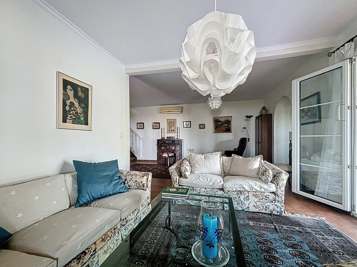 Cette charmante maison andalouse, nichée sur les hauteurs d'Arenas, l'un des nombreux villages de montagne enchanteurs de la région, offre une vue panoramique imprenable sur la mer Méditerranée et la campagne environnante. La maison nécessite une rénovation et un peu d'attention pour révéler tout son potentiel. Pénétrez à l'intérieur et découvrez un espace de vie lumineux et spacieux au rez-de-chaussée, communiquant harmonieusement avec une cuisine entièrement équipée et une terrasse ensoleillée. Le véritable atout est le jardin d'hiver vitré, doté d'un second espace repas, idéal pour savourer des repas en admirant la vue imprenable sur la mer et la piscine en contrebas. Ce niveau comprend également des toilettes invités et une salle de bains avec baignoire pour plus de confort. Attenante à l'espace de vie ouvert se trouve une pièce supplémentaire polyvalente qui pourrait facilement être transformée en quatrième chambre, chambre d'amis ou salon cosy. À l'étage, vous trouverez trois chambres de belles dimensions, dont une actuellement aménagée en bureau, idéale pour le télétravail avec une vue inspirante. Une spacieuse salle de bains familiale avec baignoire complète l'étage. La maison est équipée de la climatisation et de placards intégrés dans toutes les pièces, garantissant confort et praticité. À l'extérieur, une piscine scintillante vous invite à la fraîcheur lors des chaudes journées d'été, tout en profitant d'une vue imprenable sur la mer. Le généreux terrain de 2 790 m² comprend un abri voiture et est orné de bougainvilliers éclatants, apportant une touche de couleur à ce jardin serein. Nous sommes ravis de pouvoir vous présenter prochainement cette propriété de rêve, en personne ou par visite virtuelle. Car ce monde est unique, à l'image de notre Axarquía. En Andalousie. Sur la Costa del Sol. Ici, sous le soleil…