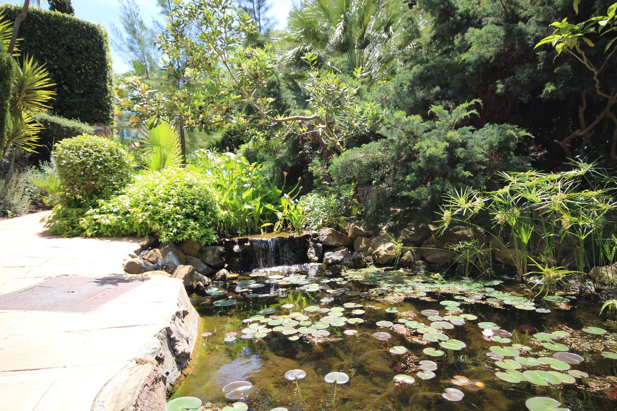 Ce complexe paisible dispose de magnifiques jardins très bien entretenus, avec un bassin et un plan d'eau. Il dispose également d'une grande piscine avec bar, d'une salle de sport et d'un sauna. Situé à proximité immédiate du club de golf de Miraflores, c'est un complexe très recherché.