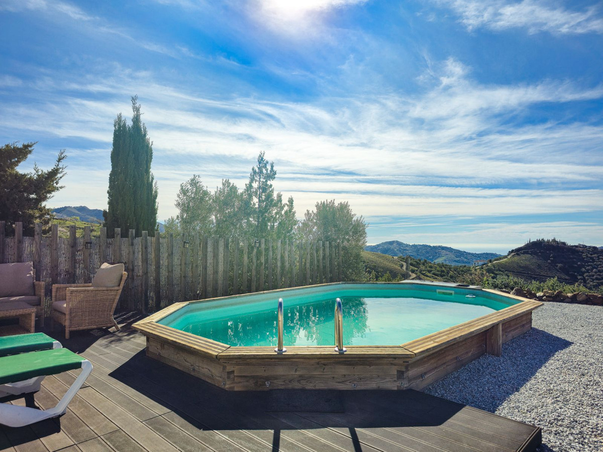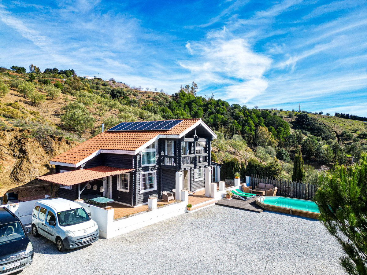 Ce charmant chalet en bois exposé plein sud se situe sur un terrain généreux de 2 555 m² dans un cadre exceptionnel et paisible, offrant de magnifiques vues sur la montagne et la mer. Idéalement situé à seulement 5 minutes en voiture de Canillas de Albaida et d’Árchez, et à 10 minutes de Cómpeta, il bénéficie d’un accès facile, sans chemins de terre ni escarpés.