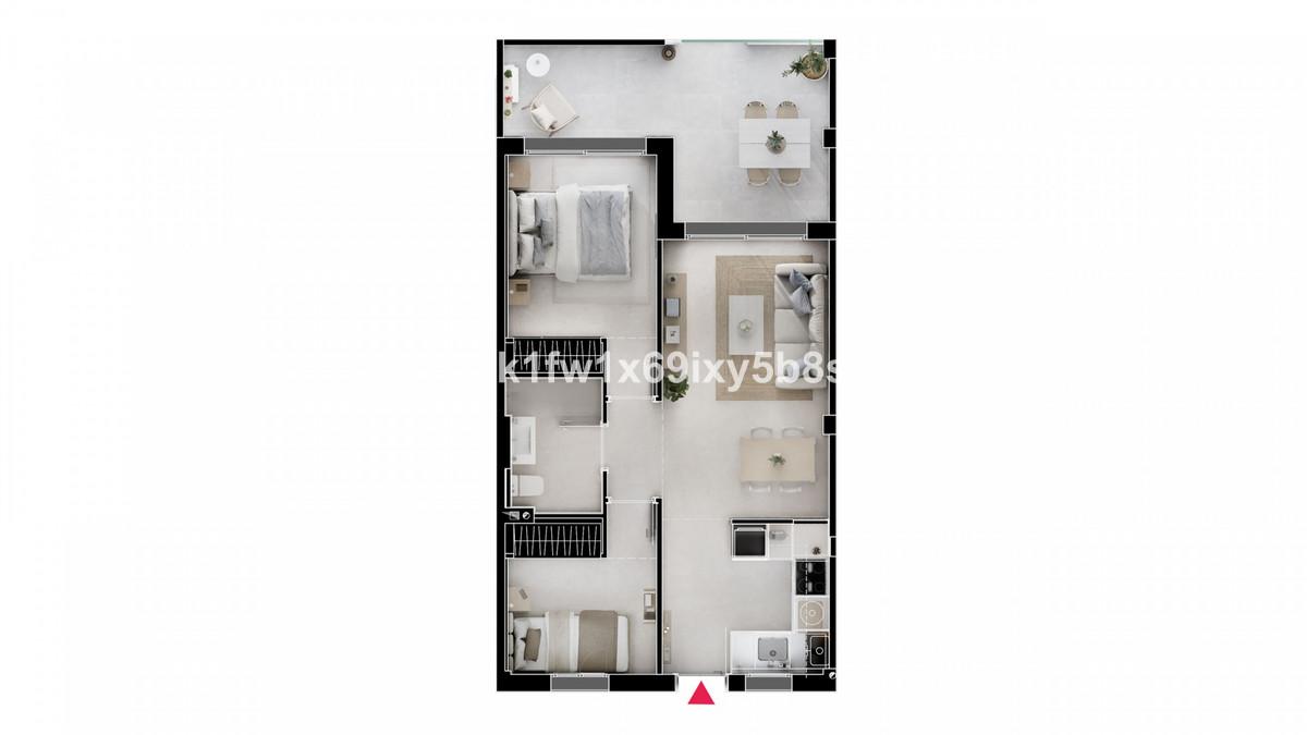 Cet appartement comprend deux chambres accueillantes et une salle de bains, ainsi qu'un séjour/salle à manger lumineux donnant sur une terrasse privative exposée plein sud, d'où vous pourrez profiter d'une agréable vue sur la piscine et le jardin communs. Son agencement fonctionnel inclut une cuisine entièrement équipée, des placards intégrés et un sol en porcelaine qui lui confère une touche d'élégance.