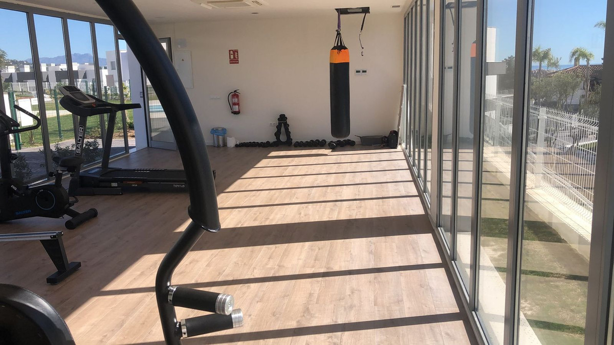 Cet appartement, situé au premier étage, dispose d'une terrasse de 20 mètres carrés. D'une superficie d'environ 90 mètres carrés, il offre une vue imprenable sur le golf de Valle Romano et sur la mer.