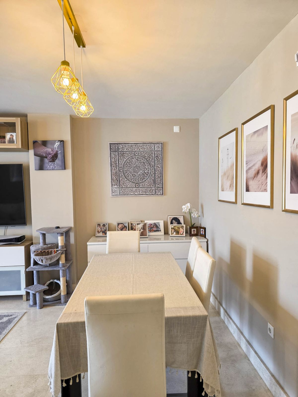 Cette propriété offre trois chambres et deux salles de bains, avec une configuration fonctionnelle idéale comme résidence principale ou secondaire. Le séjour-salle à manger spacieux et lumineux donne directement sur la terrasse, partiellement fermée par un système Lumon, permettant ainsi son utilisation toute l'année. Une partie de cet espace a été aménagée en dressing, ce qui représente un atout supplémentaire. La cuisine, indépendante et fonctionnelle, est parfaitement agencée pour un usage quotidien.