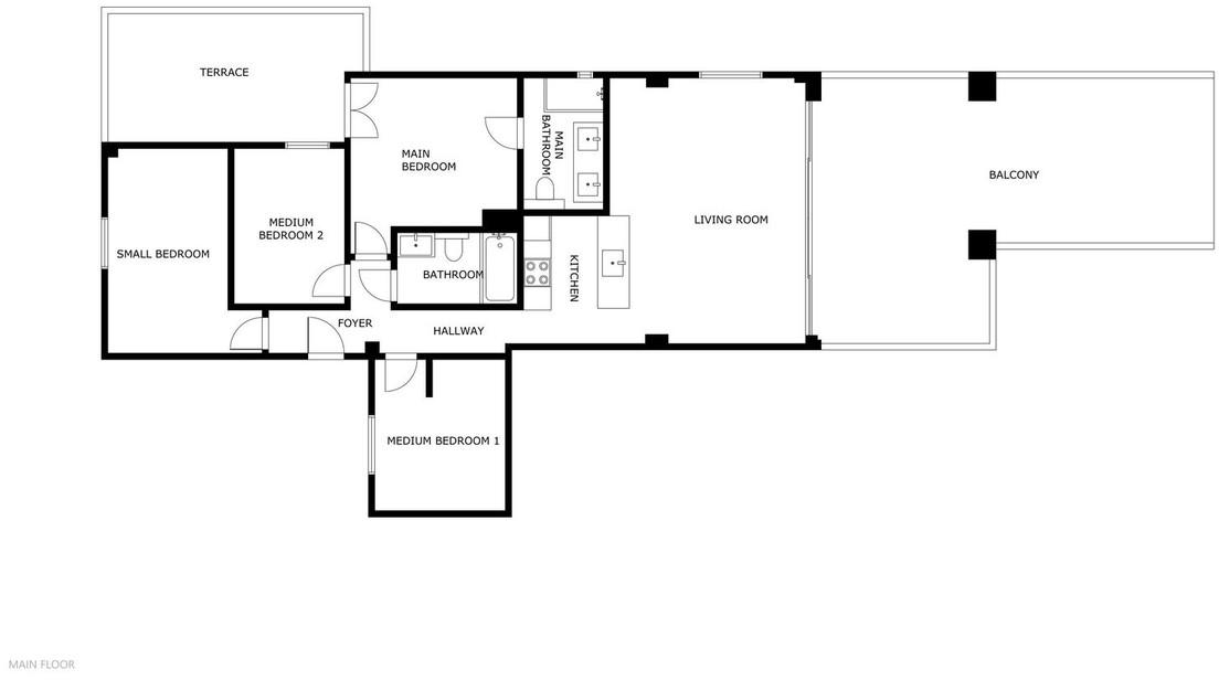 Cet appartement offre une configuration pratique avec quatre chambres, dont une suite parentale avec salle de bains privative et accès direct à la terrasse. Il comprend également une deuxième salle de bains, des toilettes séparées, un séjour/salle à manger lumineux et une cuisine américaine moderne avec îlot central et électroménager intégré. Un emplacement de parking privé et une cave sont inclus.