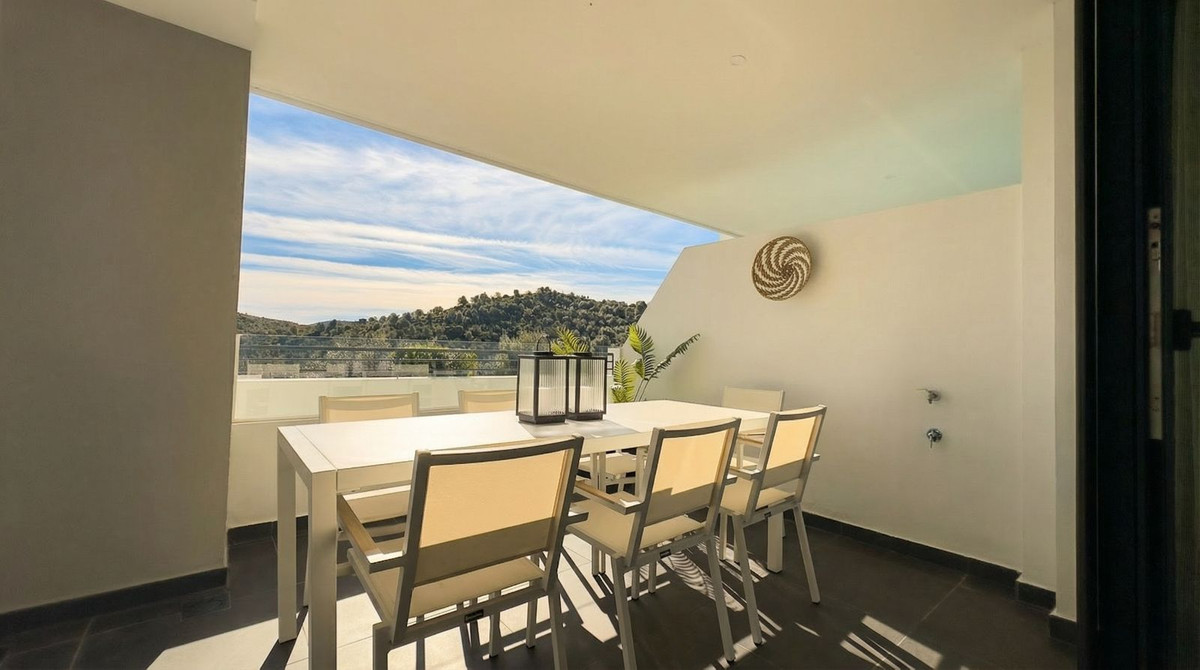 De plus, une seconde terrasse orientée au nord offre une vue sur les collines de Mijas et le lagon du complexe, idéale pour profiter du soleil couchant.
