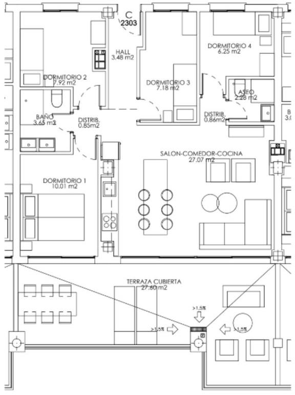 Elle comprend 4 chambres et 2 salles de bains, avec la possibilité de la convertir en 3 chambres spacieuses pour ceux qui préfèrent des espaces plus grands pour les invités.