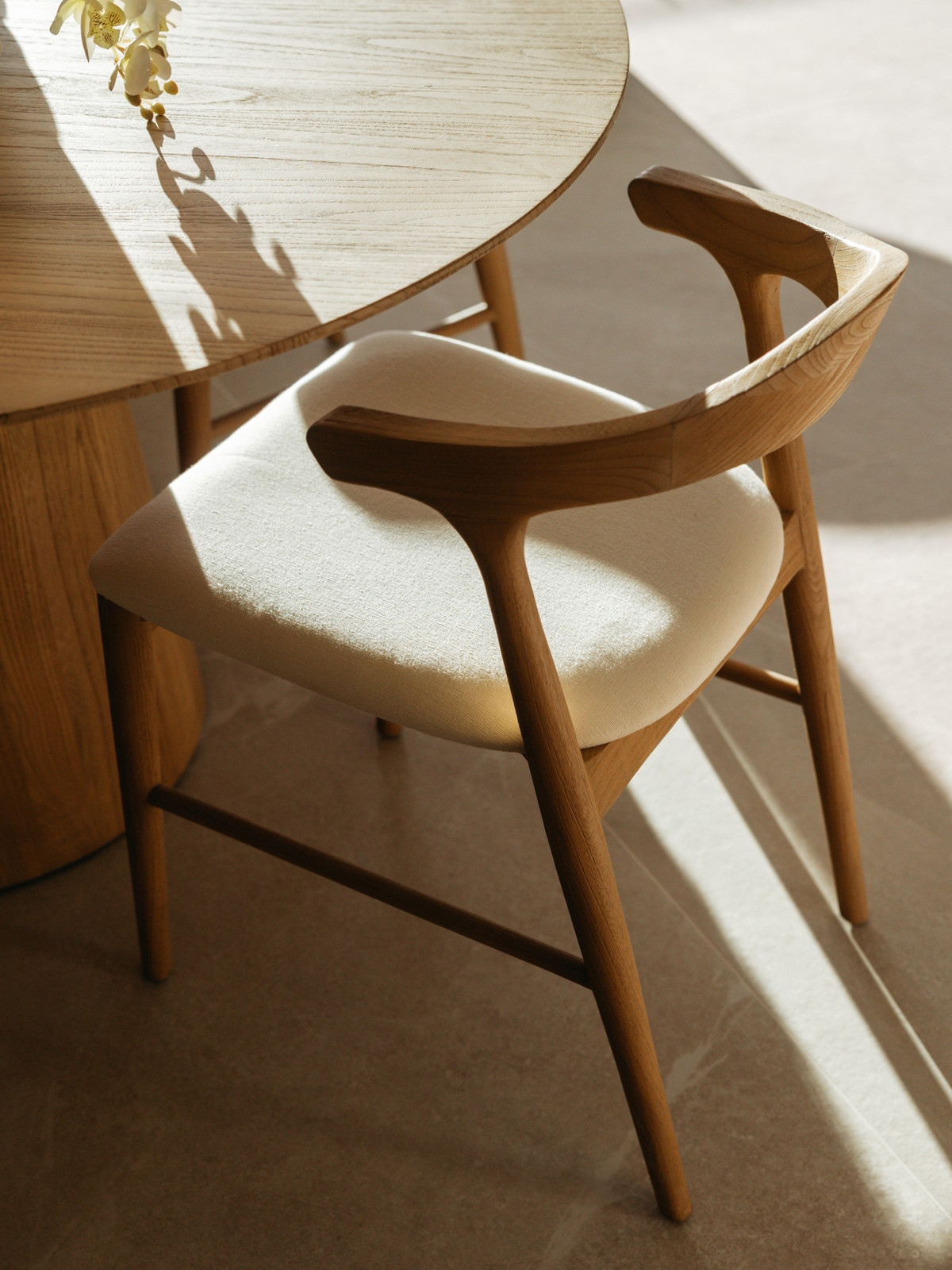 Juste devant la fenêtre de la cuisine, un charmant citronnier apporte une authentique touche méditerranéenne, s'harmonisant parfaitement avec le design nordique épuré de la maison. De ce niveau, vous accédez directement à une terrasse privée, idéale pour les repas en plein air, la détente et pour admirer les couchers de soleil spectaculaires sur la vallée du golf.