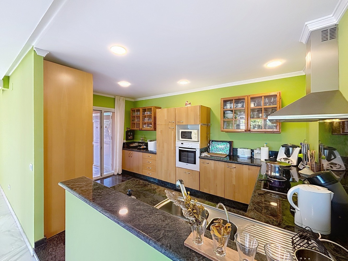 Découvrez votre havre de paix dans ce charmant appartement de trois chambres et trois salles de bains, situé dans le quartier résidentiel prisé d'El Capitan. Réparti sur deux étages, ce bien allie à la perfection confort moderne et élégance décontractée typiquement espagnole, et offre la possibilité d'aménager deux chambres supplémentaires selon vos besoins. Dès l'entrée, l'appartement vous séduit par son atmosphère lumineuse et chaleureuse. Le salon, baigné de lumière naturelle, se distingue par ses touches de vert citron qui lui confèrent énergie et convivialité. Des canapés confortables aux tons doux créent un espace idéal pour se détendre ou recevoir, tandis que de grandes fenêtres offrent une vue imprenable sur les environs. La cuisine, à la fois fonctionnelle et esthétique, est équipée de meubles en bois, d'appareils électroménagers modernes et d'un généreux plan de travail. De larges portes vitrées relient l'intérieur à l'extérieur, vous invitant à savourer des repas en plein air sous le soleil espagnol. De plus, un système d'osmose inverse permet de consommer l'eau directement du robinet, garantissant ainsi une eau d'excellente qualité. À l'étage, les trois chambres offrent calme et intimité. La suite parentale se distingue comme un véritable havre de paix, avec ses tons doux et ses vues inspirantes qui promettent des matins sereins. Les trois salles de bains, finies avec des matériaux de qualité et équipées d'installations modernes, offrent confort et une touche de luxe aux résidents comme à leurs invités. La maison dispose également de deux réservoirs d'eau de 2000 litres chacun, d'un puits enregistré et d'un ascenseur, garantissant confort et autonomie. Des solutions de rangement intégrées et un système de climatisation assurent un confort optimal toute l'année. Bien plus qu'une simple maison, cette propriété est une invitation à savourer l'authentique art de vivre méditerranéen. Imaginez des matins ensoleillés sur votre terrasse, des après-midi de détente au bord de la piscine et des soirées inoubliables à contempler le coucher du soleil. Située dans le quartier résidentiel prisé d'El Capitan, elle offre la tranquillité sans renoncer à la proximité des commodités et du littoral. Nous serons ravis de vous présenter prochainement cette propriété, en personne ou par visite virtuelle. Car ce monde est unique, à l'image de notre Axarquía. En Andalousie. Sur la Costa del Sol. Ici, sous le soleil…