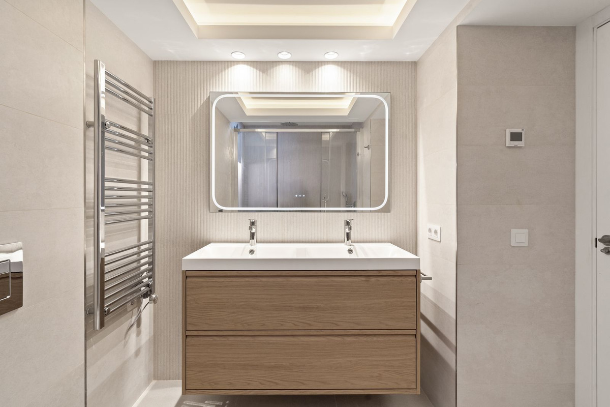 Les salles de bains ont été repensées dans un style contemporain et épuré, intégrant des douches à l'italienne, des équipements raffinés et des textures neutres. Des solutions de rangement sont intégrées dans tout l'appartement, préservant l'harmonie visuelle tout en offrant une grande fonctionnalité.