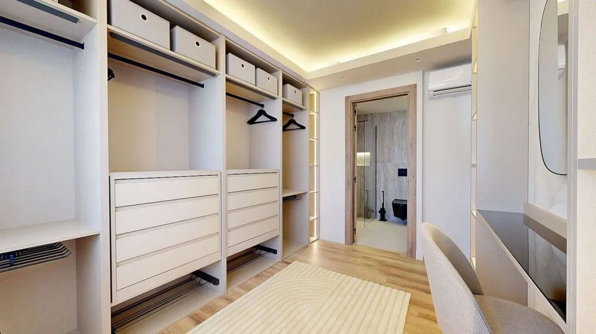 Avec une surface construite de 204 m² sur un terrain privé de 250 m², la maison est répartie sur trois étages et comprend 3 chambres spacieuses, 3 salles de bains et un salon lumineux avec accès direct au jardin et à la piscine commune.