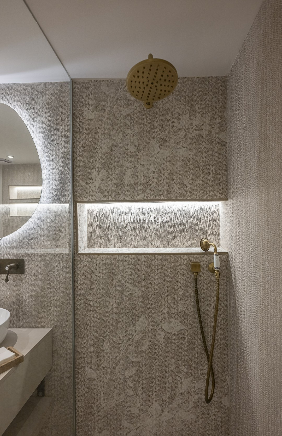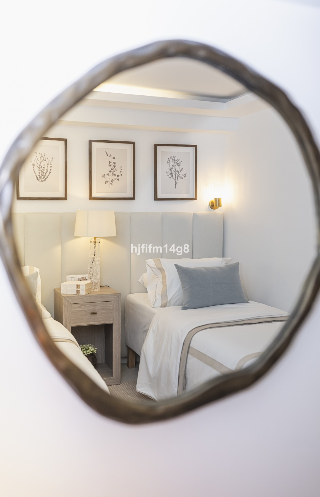 Au niveau inférieur se trouvent une chambre supplémentaire avec salle de bains privative, une autre chambre d'amis, une salle de bains séparée pour les invités et un débarras pratique, offrant ainsi un hébergement flexible pour la famille et les visiteurs. Ce niveau comprend également des éléments de design distinctifs tels qu'un miroir vintage haut de gamme en émail églomisé et des appliques murales artisanales de luxe, conférant à l'espace caractère et raffinement.