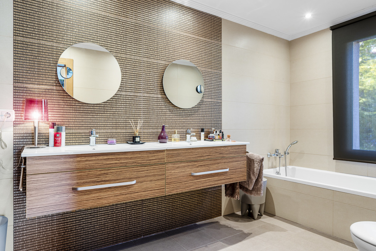 L'appartement est équipé de la climatisation, du chauffage au sol dans les salles de bains, de fenêtres à double vitrage, de placards intégrés, d'un système d'alarme, de deux places de parking et d'un local de rangement. Les résidents bénéficient également d'un accès à une piscine commune bien entretenue, située dans un environnement calme et sécurisé.