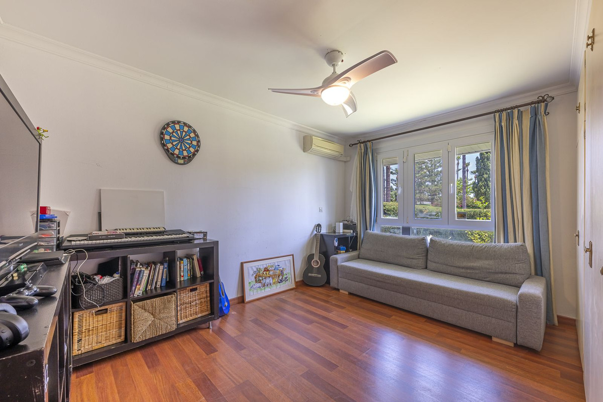 À quelques minutes à vélo de la plage, des clubs de tennis et du port de plaisance, cet emplacement est idéal pour profiter pleinement du style de vie de Sotogrande. Les intérieurs baignés de lumière s'ouvrent sur une vaste terrasse, parfaite pour recevoir, organiser des barbecues ou se détendre au bord de la piscine privée.