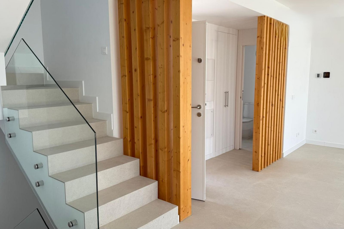 Villa mitoyenne neuve de 3 chambres à louer et à vendre, située dans le prestigieux complexe résidentiel Serene Atalaya, sur le Nouveau Golden Mile d'Estepona. Construite dans un style architectural contemporain et moderne avec des matériaux haut de gamme, la villa offre une surface habitable de 200 m², dont 154,97 m² de surface utile, 77 m² de terrasses, un jardin privatif de 182 m², un solarium privatif de 44,47 m² et un parking privé pour deux voitures. Actuellement composée de trois chambres, la villa offre la possibilité d'aménager jusqu'à deux chambres supplémentaires au sous-sol, portant ainsi le nombre total de chambres à cinq. Le sous-sol, baigné de lumière naturelle, peut être transformé en salle de sport, salle de cinéma, salle de jeux, salon ou espace de vie multifonctionnel. La villa se trouve dans une urbanisation sécurisée et fermée, entourée de prestigieux golfs et d'espaces verts. Elle est à seulement 7 minutes en voiture de Puerto Banús, à 15-18 minutes du centre-ville de Marbella et à environ 45 minutes de l'aéroport international de Malaga. Le supermarché Mercadona et les commerces de proximité sont accessibles en 15 minutes à pied environ. La villa est louée non meublée. Un ameublement complet est disponible en option pour 500 euros supplémentaires par mois, et une piscine privée peut être ajoutée pour 500 euros supplémentaires par mois. Ce bien est idéal pour y vivre à l'année, comme résidence secondaire ou comme investissement sur la Costa del Sol.