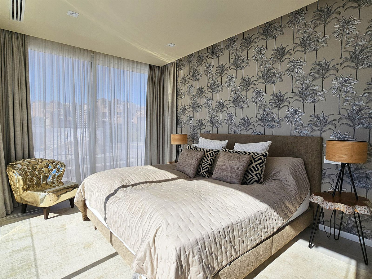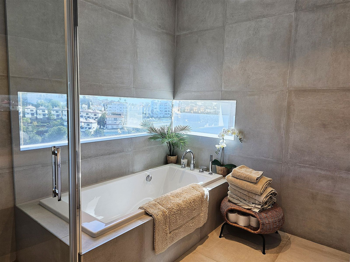 Les cinq chambres, donnant sur l'extérieur, sont dotées de grands placards intégrés. Quatre d'entre elles bénéficient de rideaux électriques, et chaque salle de bains est équipée d'un chauffage au sol. La villa comprend également la climatisation Airzone, une réserve d'eau de 1 000 litres, un système de traitement de l'eau, des vitres de sécurité anti-UV, des panneaux solaires, un système d'alarme, un coffre-fort, un sol en porcelaine de haute qualité, un barbecue à gaz et un interphone vidéo.