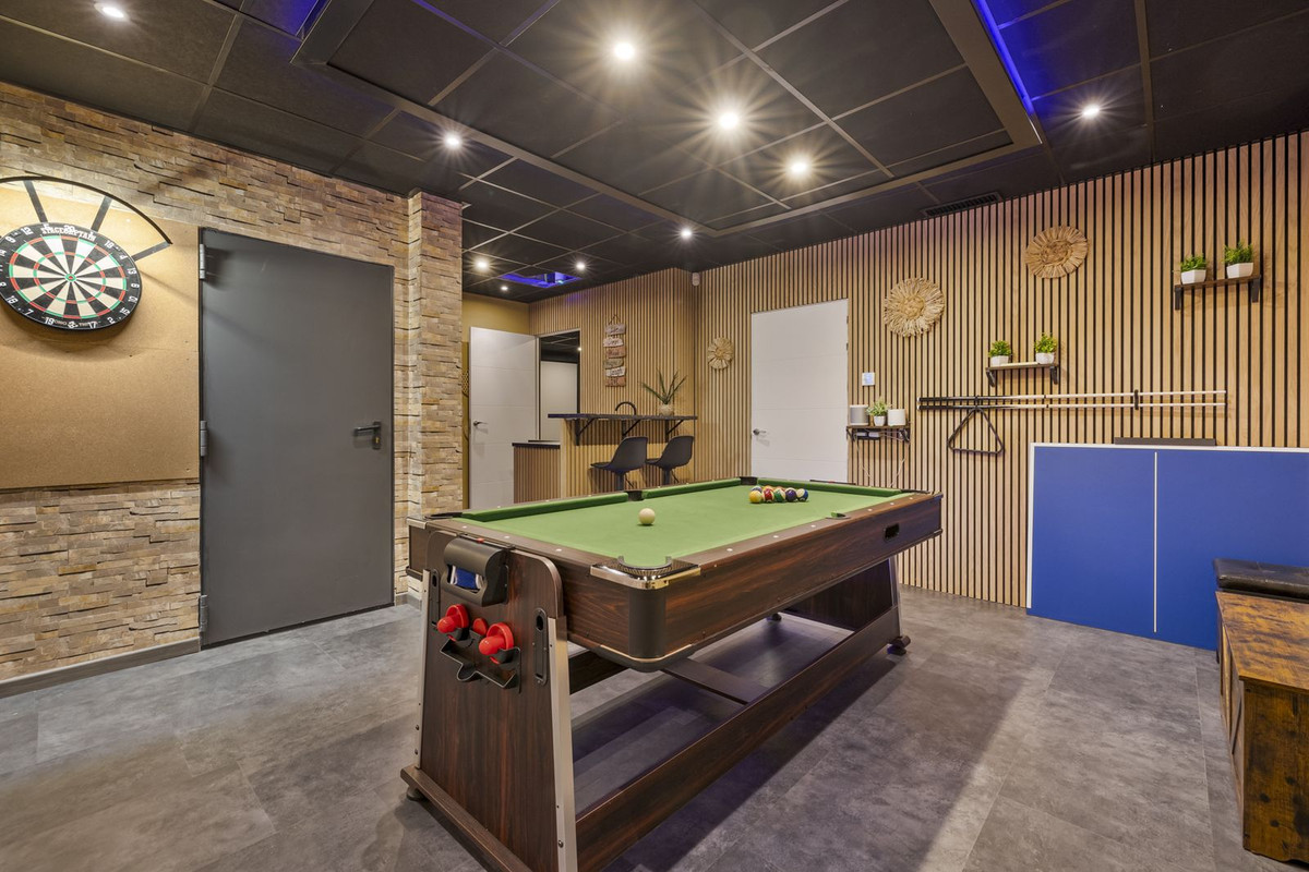 Équipements : Terrasse couverte, Placards intégrés, Terrasse privée, Sauna, Salle de jeux, Appartement d'invités, Débarras, Buanderie, Salle de bains attenante, Jacuzzi, Barbecue, Double vitrage, Domotique, Sous-sol