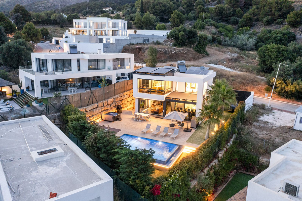 À vendre – Villa Yara | Villa contemporaine à Mijas avec salle de cinéma, sauna, piscine et vue sur la montagne.