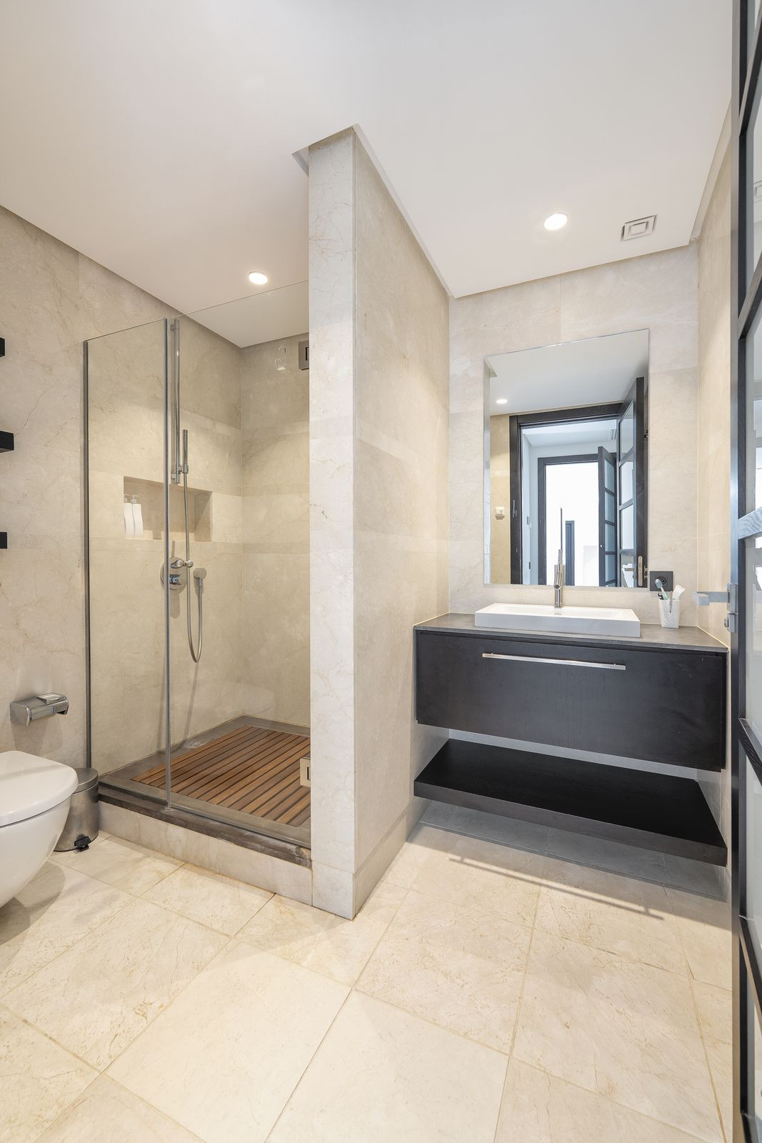 Cette maison de ville comprend plusieurs suites spacieuses, offrant chacune confort, intimité et salles de bains élégamment aménagées. La suite parentale se distingue par ses dimensions impressionnantes, ses rangements sur mesure et sa vue imprenable sur le paysage naturel environnant.