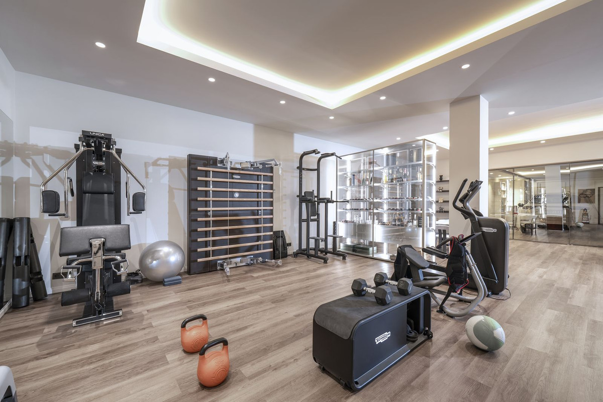 Équipements : Terrasse couverte, Ascenseur, Placards aménagés, Terrasse privée, Solarium, Salle de sport, Sauna, Débarras, Buanderie, Salle de bains attenante, Sol en marbre, Bar, Double vitrage, Sous-sol, Fibre optique
