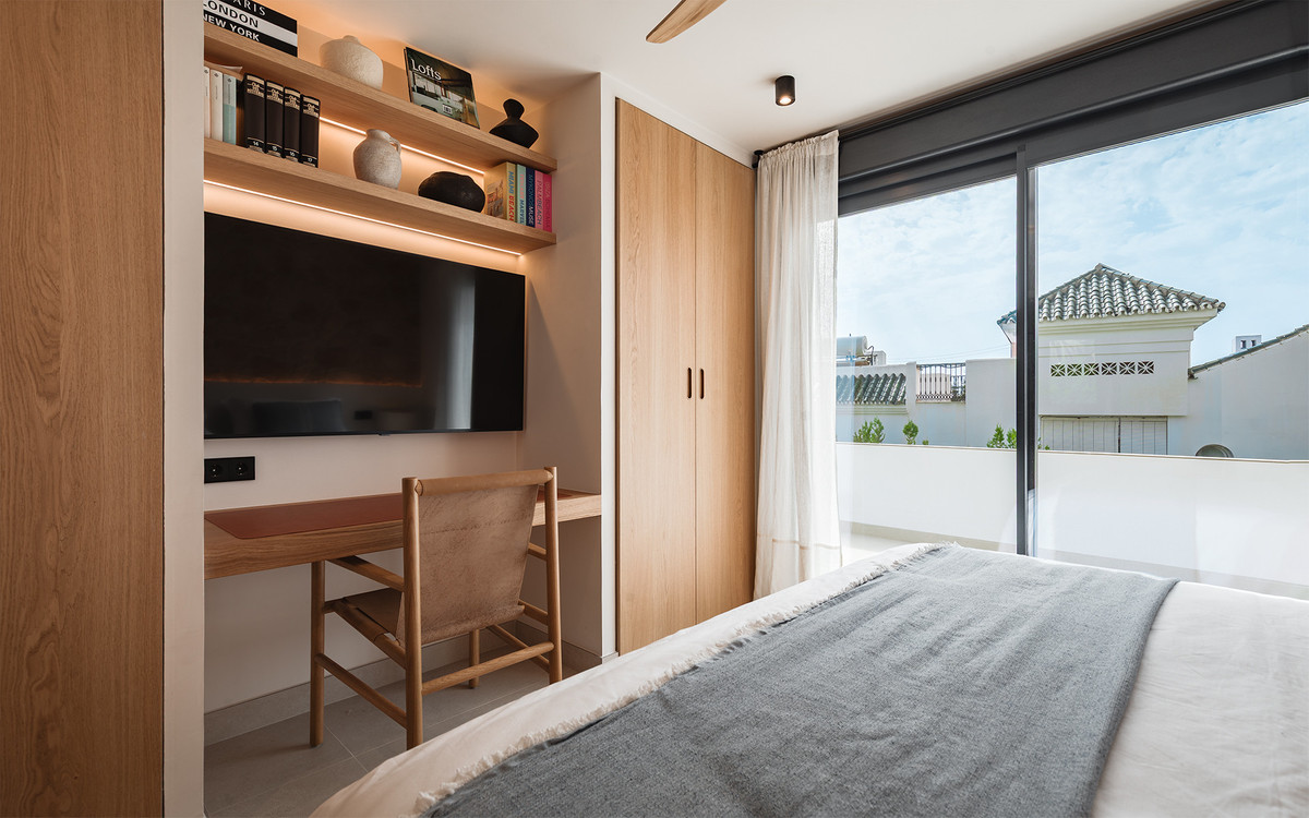 Villa exclusive au design moderne et aux subtiles touches andalouses, située sur un terrain plat spacieux et privé à Huerta del Prado, à seulement 5 minutes en voiture de la plage, du centre commercial La Cañada et du Golden Mile de Marbella.