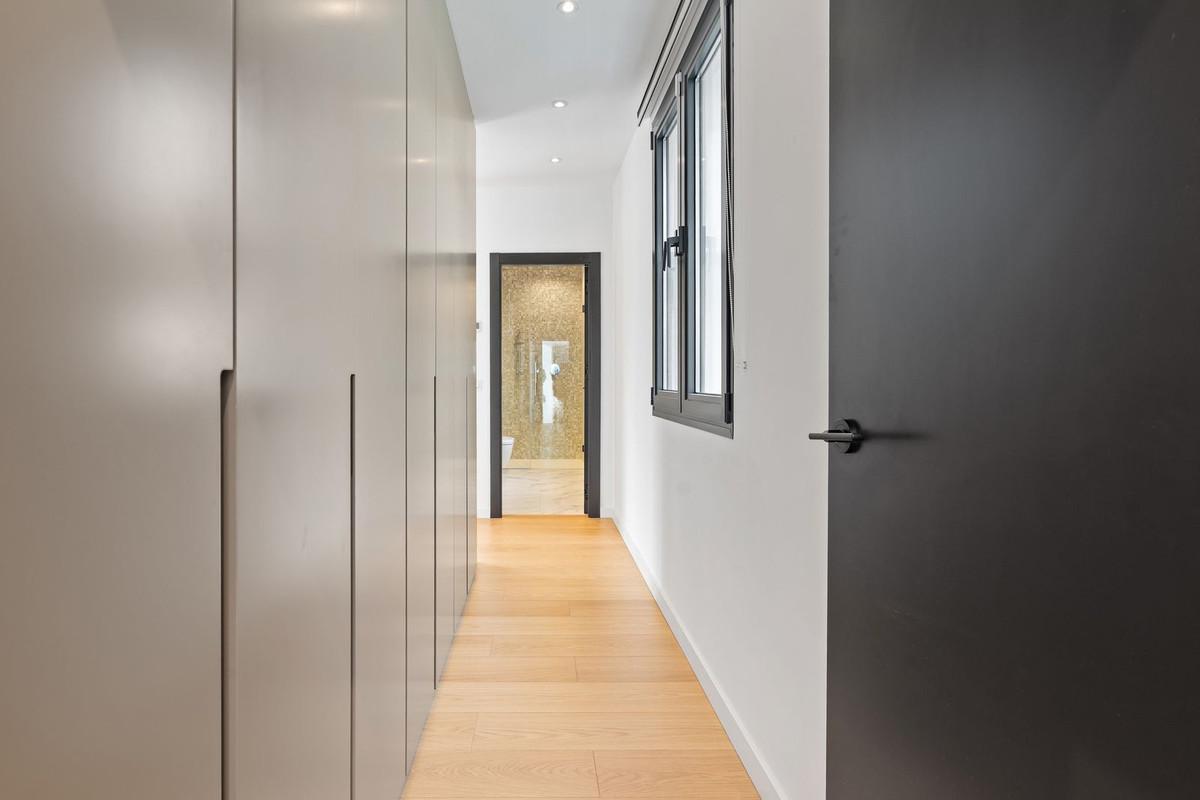 Le niveau inférieur est dédié au confort et aux loisirs, avec une salle de sport privée et un espace spa comprenant sauna, jacuzzi et hammam, ainsi que des espaces de divertissement, des logements pour le personnel, des rangements et des locaux techniques. La villa est équipée d'un chauffage au sol, d'une climatisation performante, de double vitrage et d'une cheminée. Son efficacité énergétique est optimisée grâce à des panneaux solaires photovoltaïques avec système de batteries FVE et un chauffe-eau solaire.