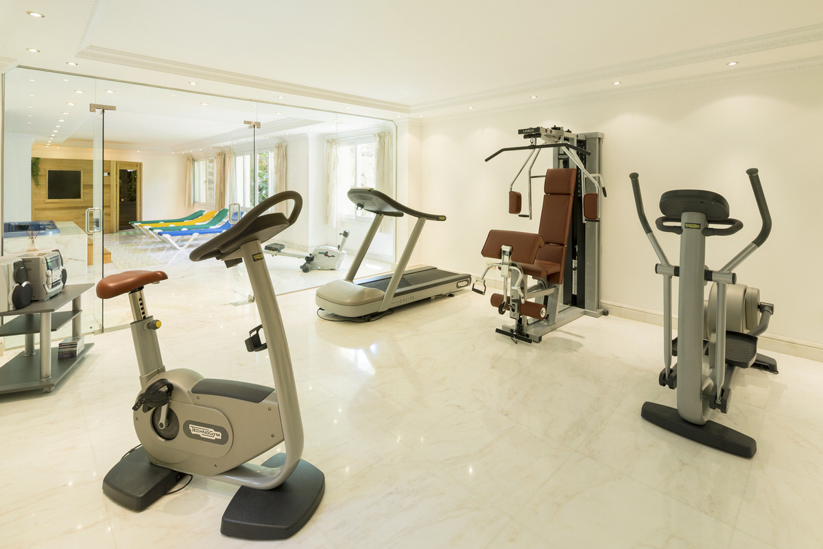 Caractéristiques : Terrasse couverte, Placards intégrés, Proximité des transports, Terrasse privée, Solarium, Télévision par satellite, Wi-Fi, Salle de sport, Sauna, Salle de jeux, Appartement d’invités, Débarras, Buanderie, Salle de bains attenante, Accès pour personnes à mobilité réduite, Sol en marbre, Jacuzzi, Bar, Barbecue, Double vitrage, Domotique