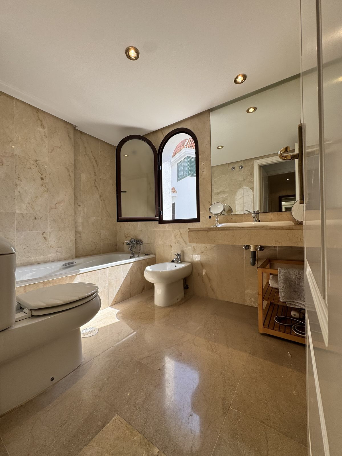 The apartment enjoys pleasant open views over the surrounding greenery, creating a peaceful and very private atmosphere. Its south-west orientation ensures beautiful natural light throughout the afternoon and evening sun, making the spacious 31 m² terrace the perfect place to relax, dine outdoors, and enjoy the warm Marbella sunsets.