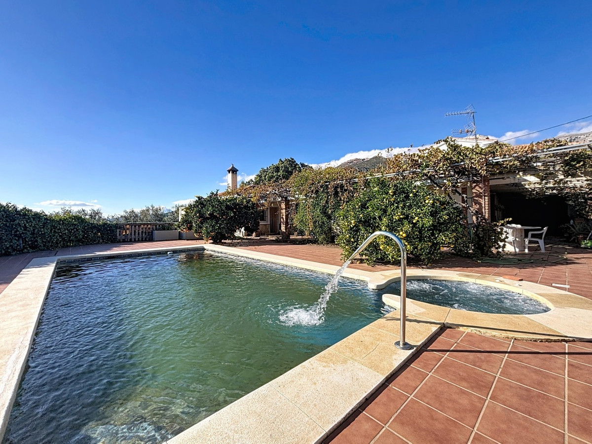 This finca in Periana offers spaciousness, comfort and a privileged natural environment, ideal for both family use and investment thanks to its two completely independent floors. On the ground floor we find a very spacious house that has 4 bedrooms, 2 bathrooms, 2 kitchens, living-dining room and a pantry, offering multiple options of use and distribution. The upper floor forms a second independent home, consisting of a living-dining room, separate kitchen, 2 bathrooms, 2 bedrooms and a laundry room, which makes it a perfect space for guests, holiday rentals or for two families who wish to live together while maintaining their privacy. Outside, the property offers a magnificent outdoor space with a private pool, jacuzzi, a large plot with various fruit trees and spectacular panoramic mountain views. In addition, it has a large garage, ideal for several vehicles or to use as additional storage space. A unique opportunity for those looking for a versatile, spacious estate with an incomparable environment in Periana. We are delighted to be able to present this property to you soon, either personally or via virtual viewing. Because this world is unique - like our Axarquía. In Andalusia. On the Costa del Sol. Here, on the sunny side of life...