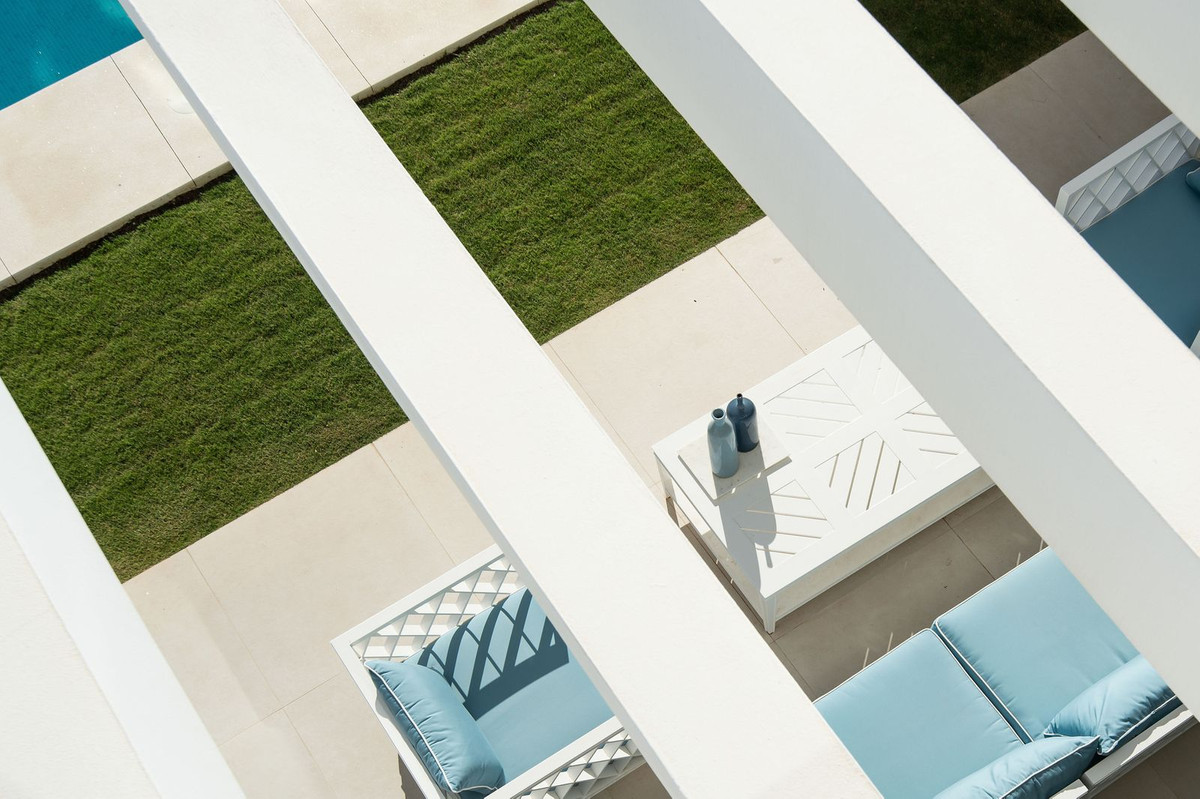 Unwind in spacious en-suite bedrooms spread across four levels, each designed for ultimate comfort and privacy. The open-plan living area on the ground floor seamlessly connects with the pool terrace, inviting the Mediterranean vistas right into your home.