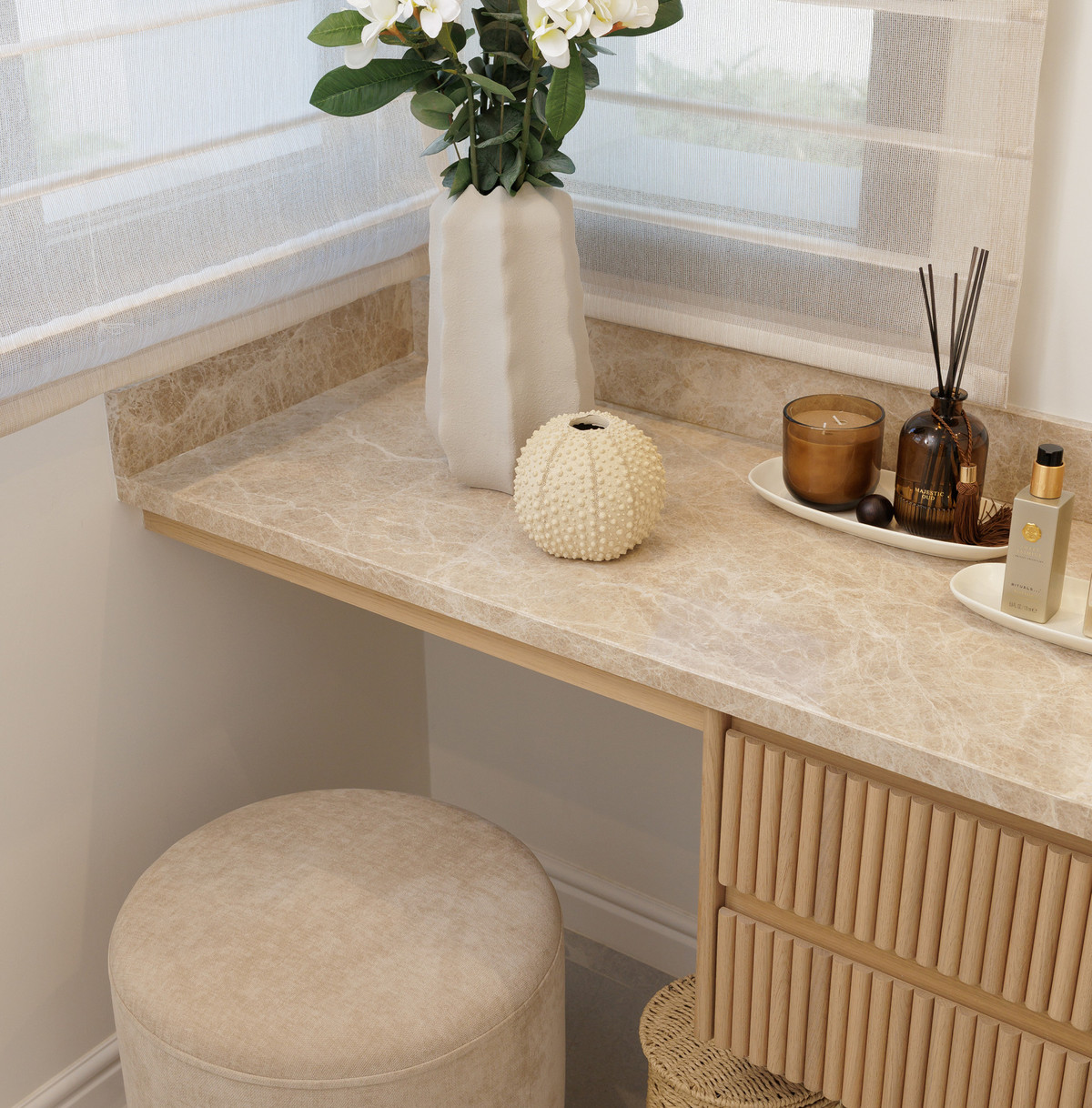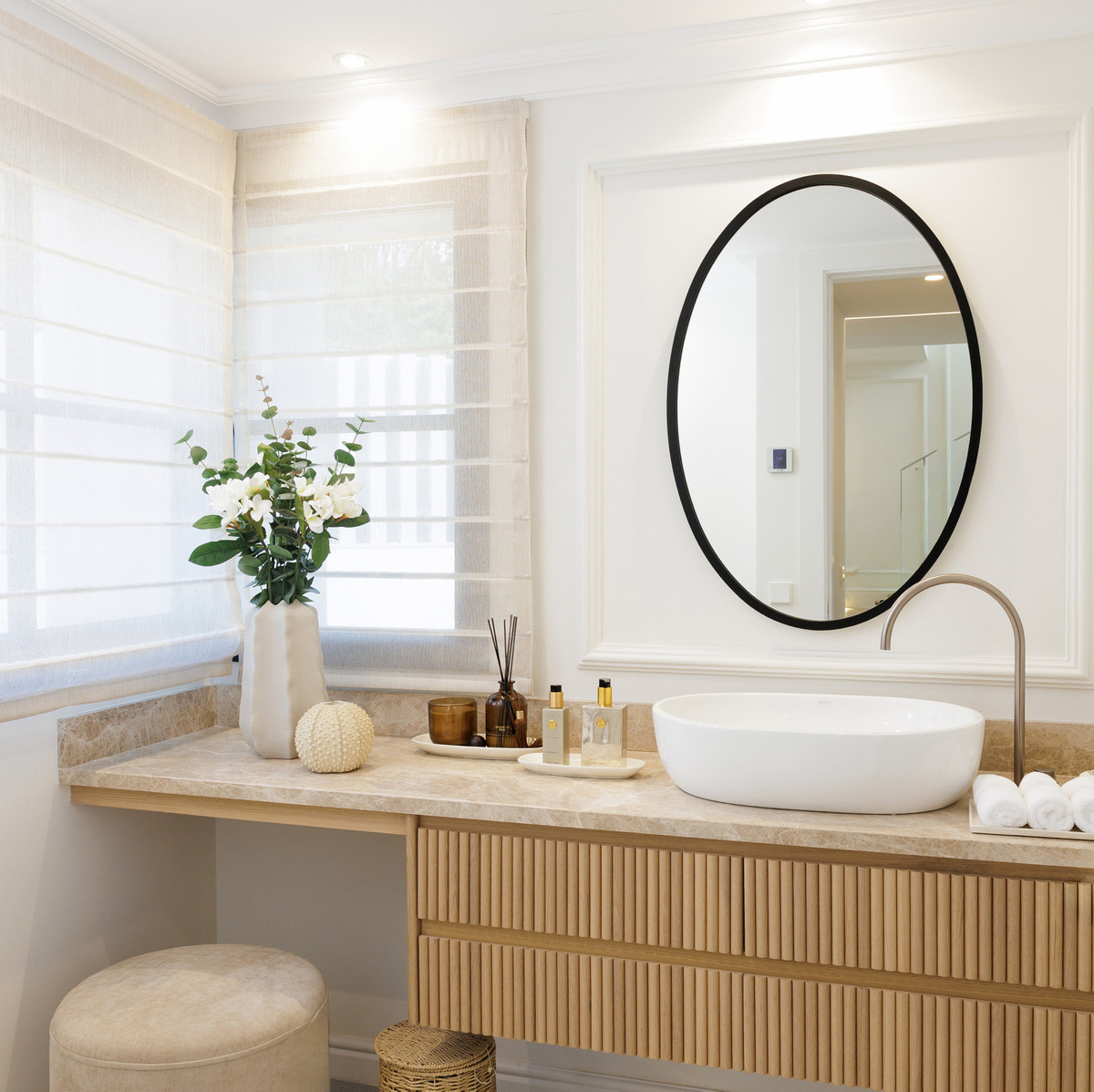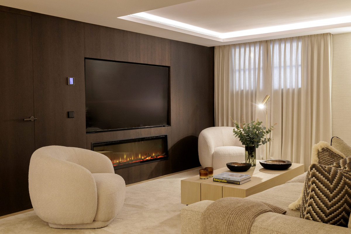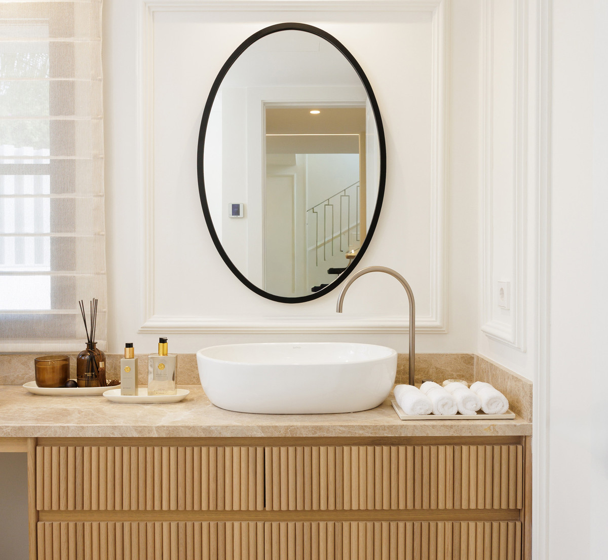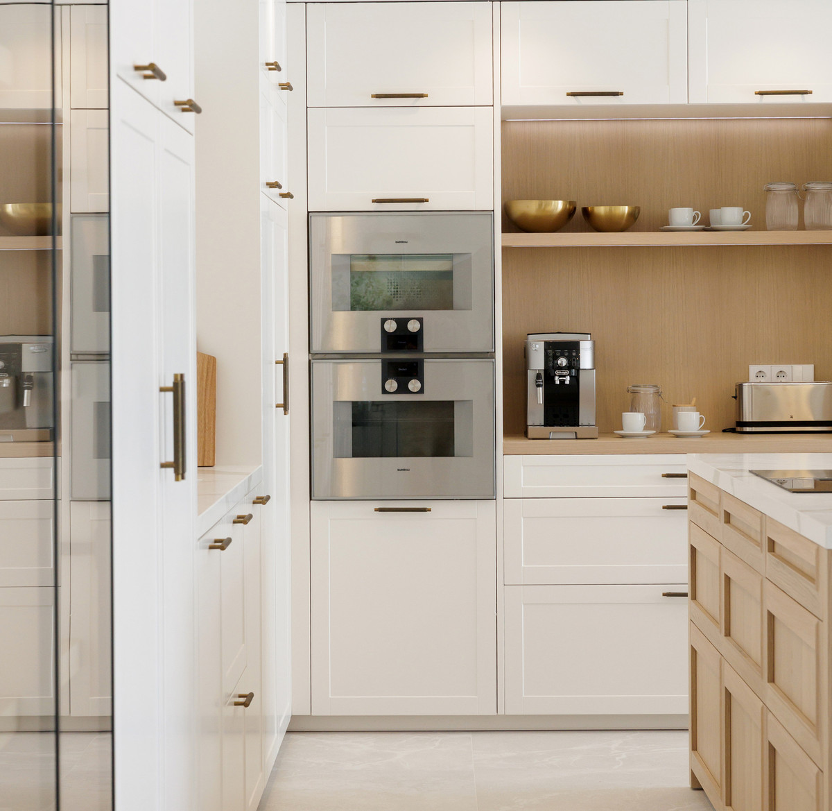 La cuisine est un atout majeur de la propriété. Conçue avec des lignes épurées et des matériaux haut de gamme, elle comprend un grand îlot central, des appareils électroménagers intégrés et de nombreux rangements dissimulés dans des placards sur mesure. Son agencement favorise la convivialité, avec une vue directe sur le salon et un accès aisé aux terrasses extérieures et à la piscine. Cette combinaison d'agencement et de design fait du rez-de-chaussée l'un des points forts de la maison.