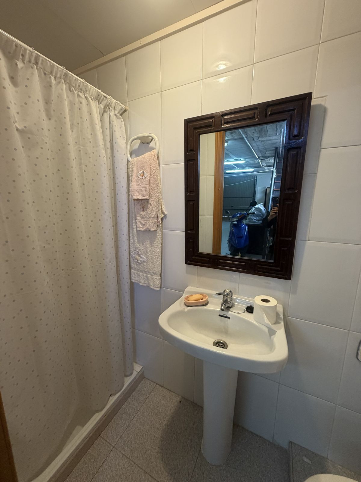Le garage est couvert et privé, avec de la place pour 3 voitures, des motos, des vélos, etc.