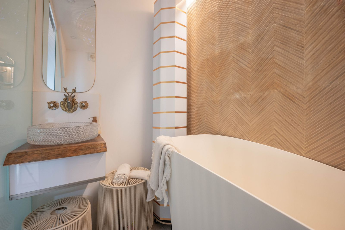Cette propriété a été entièrement rénovée avec des prestations haut de gamme, grâce à d'importants investissements garantissant confort et valeur à long terme. Elle bénéficie d'une isolation phonique intégrale de 5 cm, offrant calme et intimité absolus – un atout majeur pour une propriété en bord de mer.