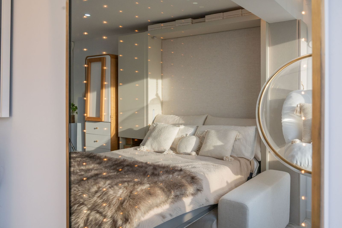 Chaque centimètre carré du studio a été intelligemment exploité, offrant de nombreux rangements intégrés qui optimisent l'espace sans compromettre l'esthétique. L'intérieur allie fonctionnalité et design raffiné, créant un cadre de vie élégant et agréable.