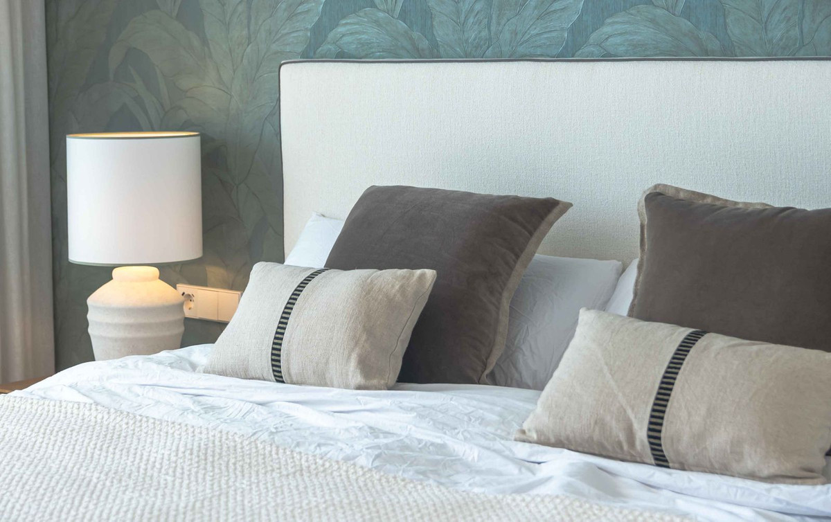 L'espace de vie principal se présente comme un espace ouvert où le salon, la salle à manger et la cuisine entièrement équipée communiquent visuellement et fonctionnellement. De larges baies vitrées coulissantes prolongent l'intérieur vers la terrasse, renforçant ainsi le lien entre intérieur et extérieur. La cuisine, dotée d'électroménagers intégrés et d'un îlot central, est conçue pour un usage quotidien et pour recevoir. Des détails subtils au plafond et l'harmonie des matériaux contribuent à une circulation spatiale sereine et cohérente.