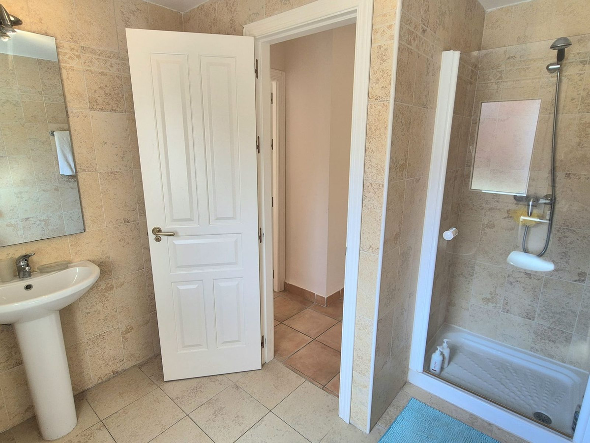 Au deuxième étage se trouve la chambre principale avec deux placards intégrés, la climatisation et une salle de bains privative avec baignoire/douche. Viennent ensuite deux autres chambres doubles, chacune équipée de placards intégrés et de la climatisation, qui partagent une salle de bains complète. Toutes les salles de bains sont dotées de fenêtres.