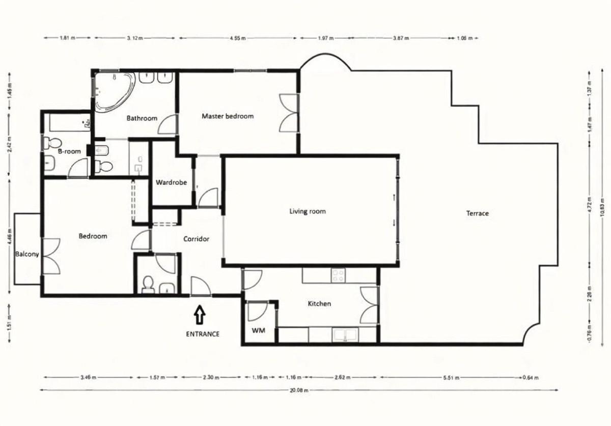 2 chambres spacieuses, chacune avec salle de bains privative + WC invités supplémentaire