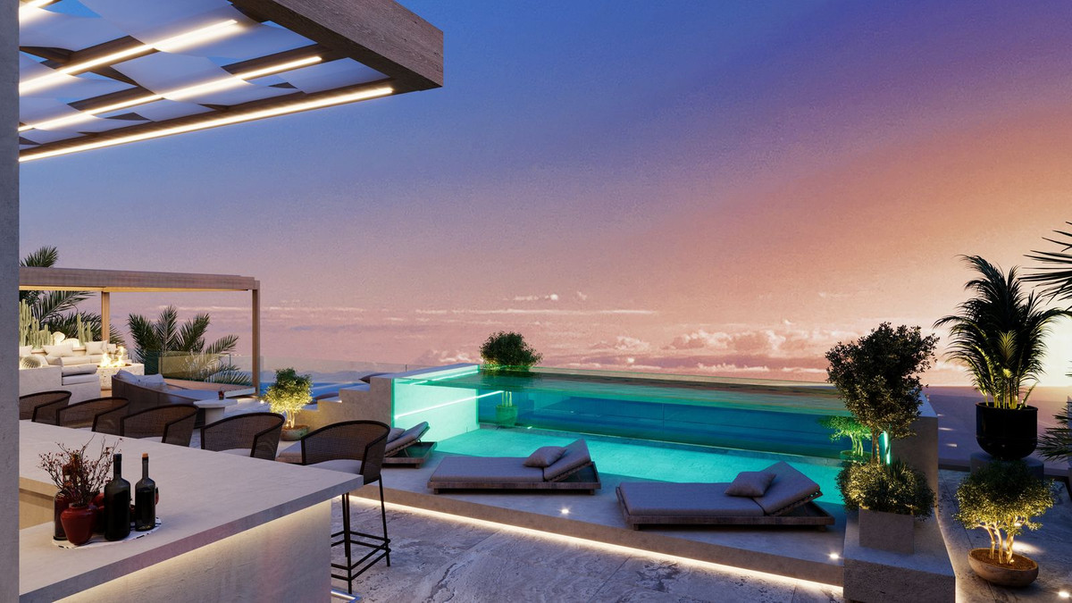 * Terrasse sur le toit avec jacuzzi, bar et espace détente