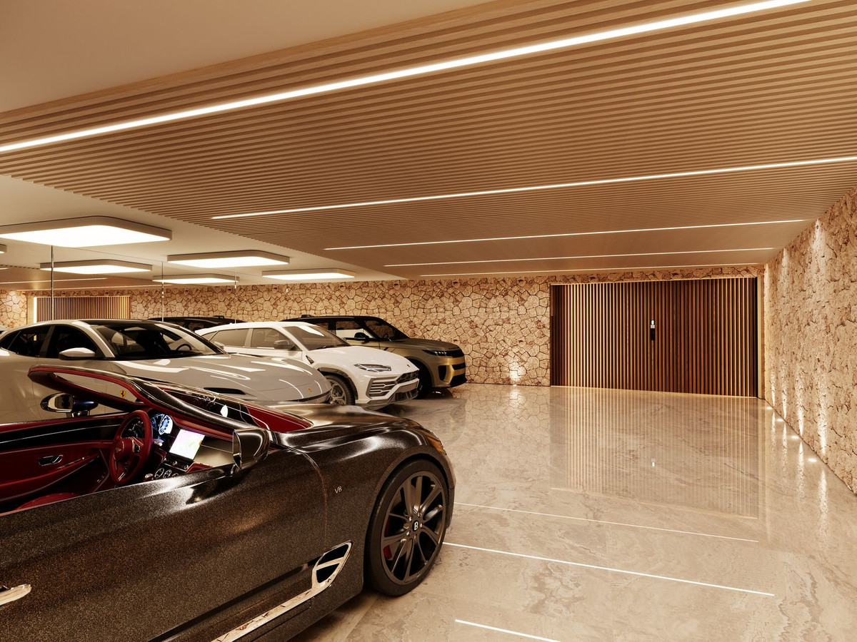 Garage spacieux pouvant accueillir jusqu'à 5 voitures, conçu pour un accès pratique et sécurisé.