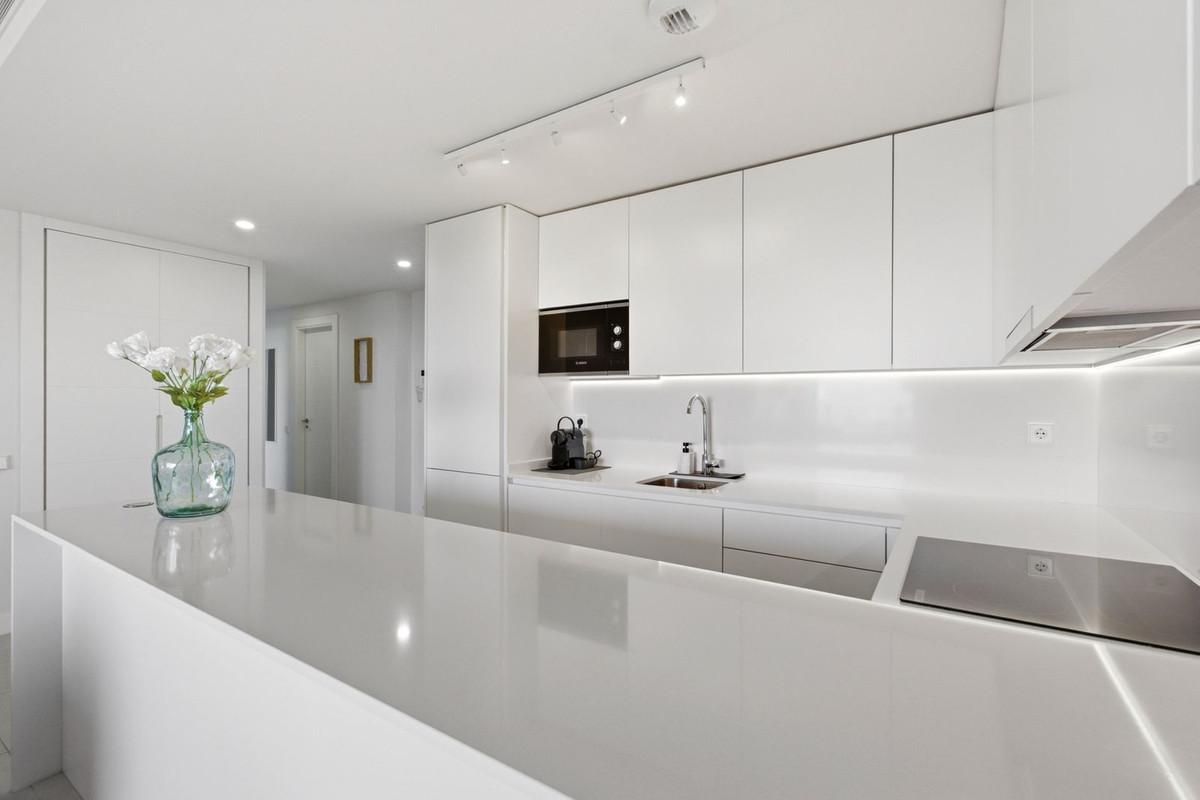Cet appartement offre un espace de vie lumineux et ouvert, avec une cuisine moderne entièrement équipée, qui communique harmonieusement avec le salon. De larges portes coulissantes donnent directement sur une terrasse spacieuse, idéale pour se détendre ou recevoir tout en profitant de la vue.