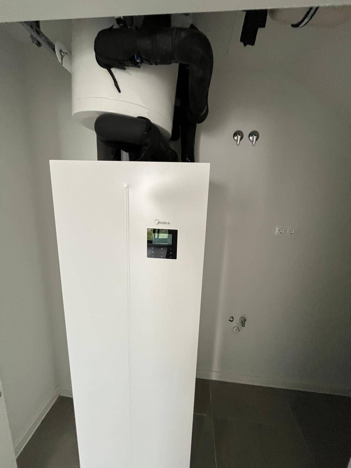 Depuis le salon, un grand escalier droit descend à l'étage inférieur, où se trouve un vaste hall d'entrée avec accès direct au jardin. On y trouve également trois chambres et deux salles de bains, dont une attenante. L'une des salles de bains est équipée d'une baignoire et l'autre d'une cabine de douche. Un grand placard comprend les arrivées d'eau et d'évacuation, ainsi que les prises électriques pour lave-linge et sèche-linge. Il y a également de la place pour un aspirateur, etc.