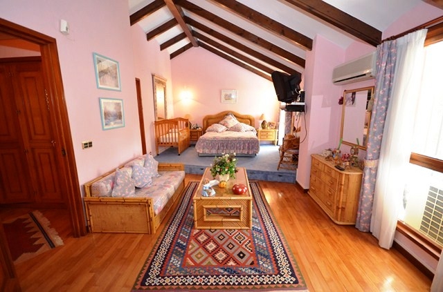 caractéristiques Air conditionné froid/chaud, Système d´alarme, Salle a manger, Cuisine meublée, armoires encastrées, Salle de jeux, garage, Jardin, Gymnase, Salon avec cheminée, zone prestigieuse, zone tranquille, sauna, piscine, bain turc, plusieurs terrasses, Courte distance de la plage, a distance de marche des resta.
