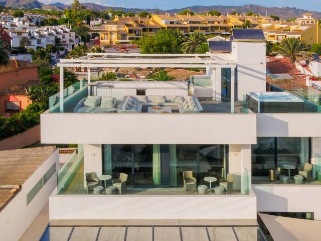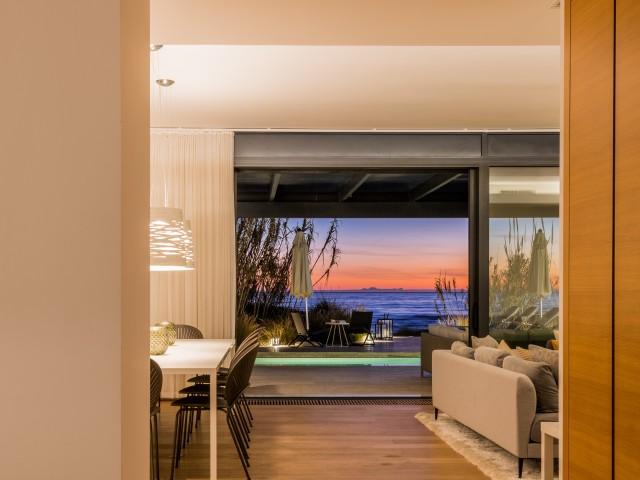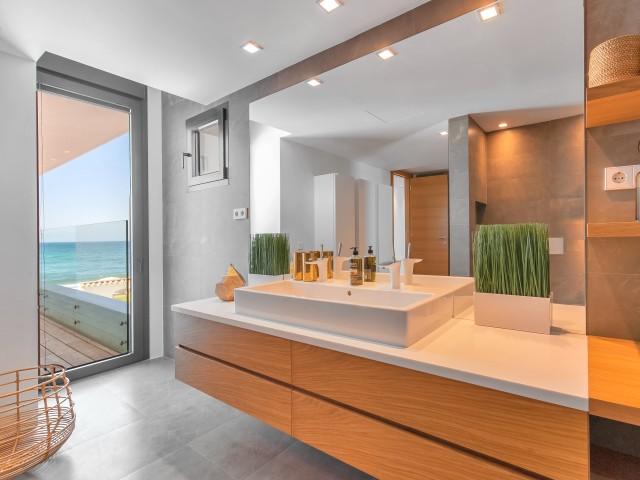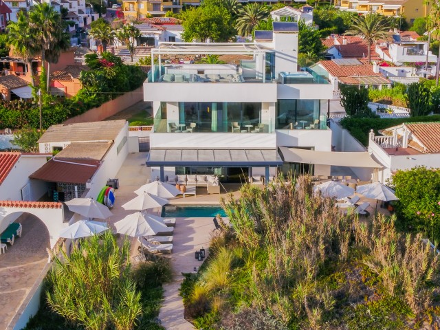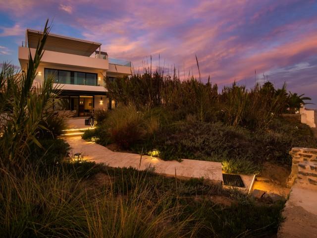 Cette propriété spectaculaire en première ligne est située sur la plage de Costa Bella, entourée de sable doré et de dunes naturelles. L´emplacement, située à l´est de Marbella, est proche de toutes les installations et à une courte distance du centre de Marbella et de l´aéroport de Malaga. La propriété a été récemment construite selon les normes les plus élevées, conçues par le célèbre architecte Jose Carlos Moya de Marbella, se distinguant par sa sophistication moderne et son élégance simple. Orientée sud ouest, la propriété bénéficie de superbes vues sur la mer et de magnifiques couchers de soleil. L´utilisation du bois, du verre, de la pierre et du béton a créé une maison familiale exceptionnelle. La propriété comprend un système de maison intelligente et toute la technologie moderne, y compris l´eau chaude solaire et chauffage au sol, système de récupération de chaleur, pompes à chaleur à haute efficacité, climatisation VR et contrôle automatisé de chaque pièce, sonorisation sans fil Sonos. Le design intérieur ne comprend que des matériaux de première qualité, des portes et fenêtres en aluminium de première qualité, du marbre de première qualité, des armoires en chêne, des planchers en chêne naturel dans toute la maison, du carrelages de qualité supérieure, un éclairage LED. Au rez de chaussée: La porte d´entrée s´ouvre sur le hall d´entrée spacieux double hauteur, menant à un vaste salon avec salle à manger et grande cuisine ouverte, entièrement équipée avec les derniers appareils modernes. Du côté de la plage, de la cuisine et du salon, de grandes portes coulissantes avec des stores électriques s´ouvrent sur une terrasse et la piscine chauffée. Un chemin vous mène à travers les dunes de sable directement à la plage. La dune privée magnifiquement aménagée offre une intimité totale aux espaces de détente et de restauration sur la terrasse. Au niveau de l´entrée il y a aussi une chambre d´amis avec dressing, et une salle de bain avec douche, WC et lavabo. Premier étage: À l´étage, , il y a la chambre principale, avec deux ensembles de penderies, et salle de bains principale avec douche, double vasque large, toilettes, et l´accès à la terrasse. Il y a deux autres chambres et une salle de bain partagée avec douche, WC et lavabo. Chacune de ces chambres a un accès direct à la terrasse face à la mer et offre une vue imprenable sur la plage. Solarium: Sur le toit, il y a une fabuleuse terrasse ouverte avec des équipements de fitness, une pergola et un jacuzzi, et, bien sûr, de superbes vues à 360 degrés. Sous-sol: Au niveau inférieur, il y a deux autres chambres doubles avec lumière naturelle, placards, une salle de bains avec lavabo, douche et WC. Le niveau inférieur dispose également d´un SPA avec bain à remous, bain à vapeur, sauna et douches; salles de stockage et buanderie. Chaque étage est desservi par l´ascenseur et l´escalier en chêne avec des balustrades en verre.