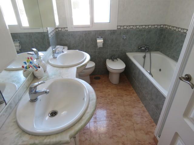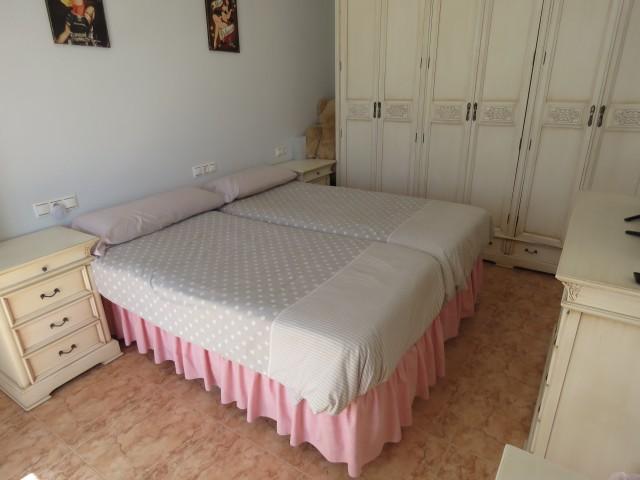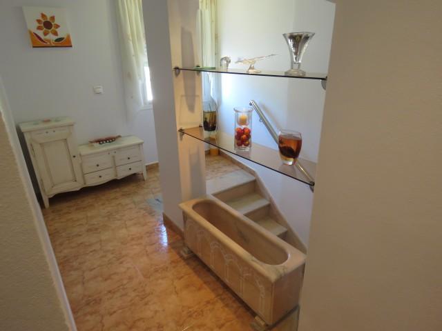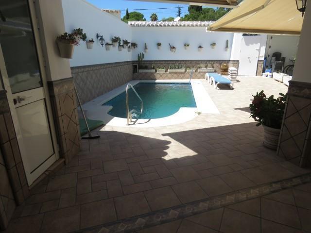 Cette villa se trouve dans la partie basse de Calahonda. Elle dispose de trois chambres et 2 salles de bains. Une chambre et salle de bains sont au rez-de-chaussée. Il y a un salon de bonne taille avec un coin repas séparé. La cuisine mène à la piscine et est entièrement équipée. Ils avaient commencé le prolongement avec une quatrième chambre, mais doit être terminé. La villa dispose d’une très grande cour privée avec piscine privée. Cette zone dispose d’une petite cuisine extérieure et de toilettes séparées. Beaucoup de potentiel.